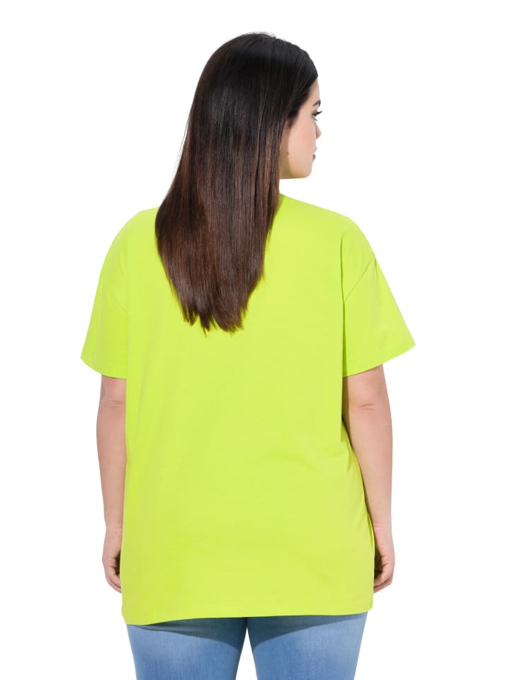 Футболка свободного кроя из мягкого трикотажа с яркими надписями, словно нарисованными от руки. V-образный вырез, спущенная линия плеча и короткие рукава. Внешний материал: 100% хлопок.