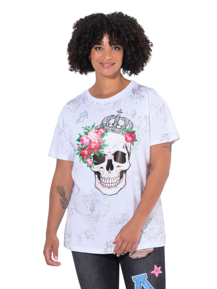 Футболка оверсайз с черепом. Круглый вырез, спущенная линия плеча и короткие рукава.