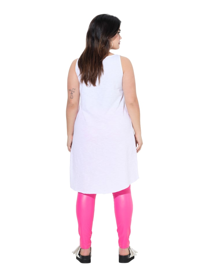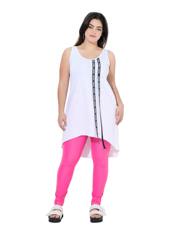 Удлиненный топ без рукавов, А-силуэт, из мягкого трикотажа с длинными декоративными лентами в виде ангела. Круглый вырез, закругленный подол, удлиненная спинка.