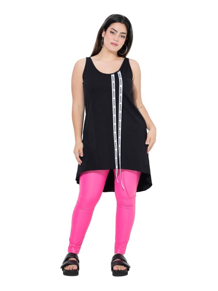 Удлиненный топ без рукавов, А-силуэт, из мягкого трикотажа с длинными декоративными лентами в виде ангела. Круглый вырез, закругленный подол, удлиненная спинка.