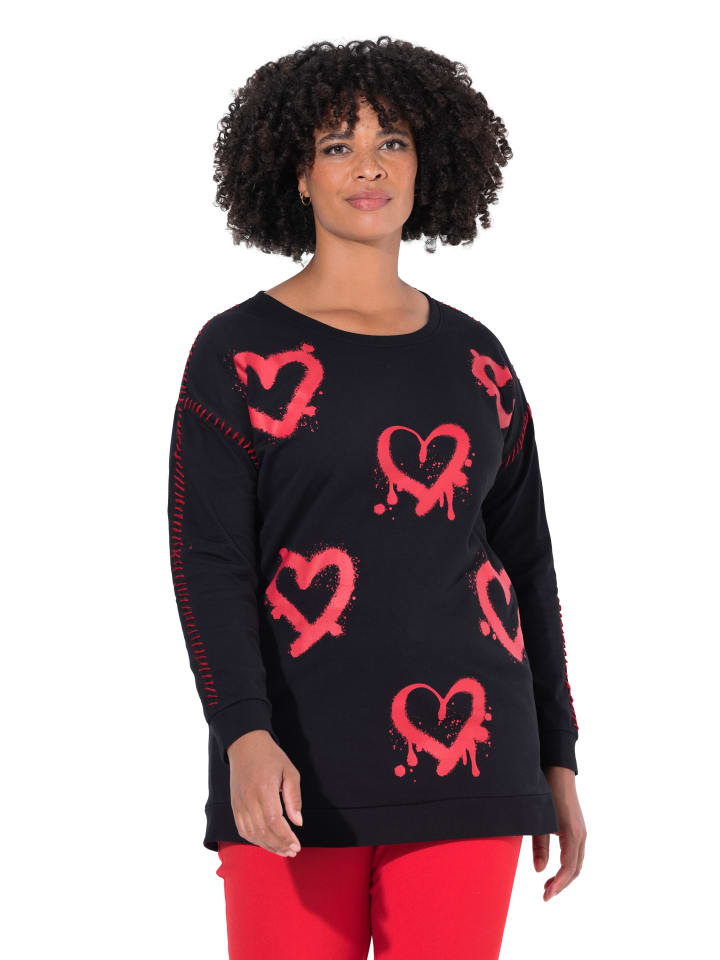 Толстовка свободного кроя из мягкой трикотажной ткани с неоновыми сердечками. Круглый вырез, спущенная линия плеча, длинные рукава. Ребристые манжеты и боковые разрезы. Внешний материал: 100% хлопок.