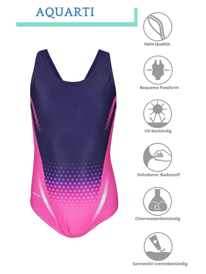 Девичий купальник с О-образной спинкой от Aquarti - незаменимая вещь для успешных тренировок по плаванию! Он не сковывает движений и очень удобен благодаря обхвату muscleback. В этой модели лямки отведены от плеч, поэтому не стесняют движений в воде. Помимо максимального комфорта во время плавания, купальники отличаются уникальным цифровым принтом. Это позволяет юным пловчихам чувствовать себя еще увереннее во время соревнований. Прочный полиэстер быстросохнущий и устойчивый к хлору, поэтому купальник сохраняет свою первоначальную форму даже после частых занятий и идеально сидит по фигуре. Идеально подходит для регулярных тренировок в воде и соревнований, а также для занятий плаванием или пляжного отдыха! Сделано в ЕС.