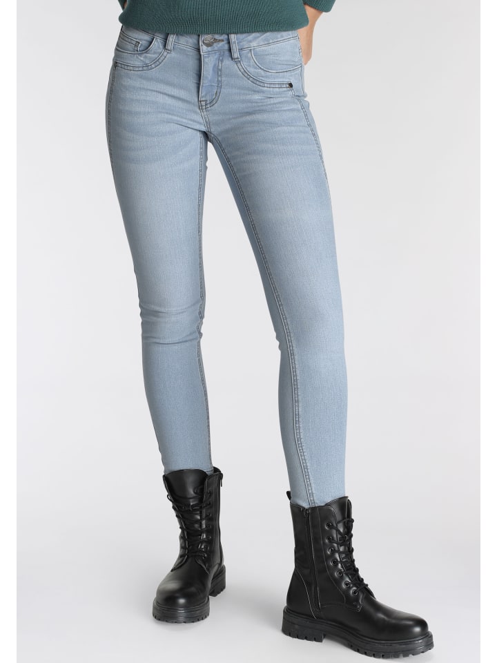 Многогранные женские джинсы 7/8 из Аризоны с эффектом потертости и потертости. Очень узкие штанины и низкая посадка. Прочные брюки благодаря прочной и износостойкой джинсовой ткани.