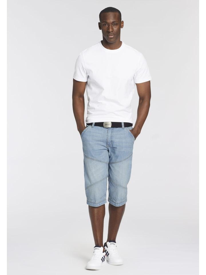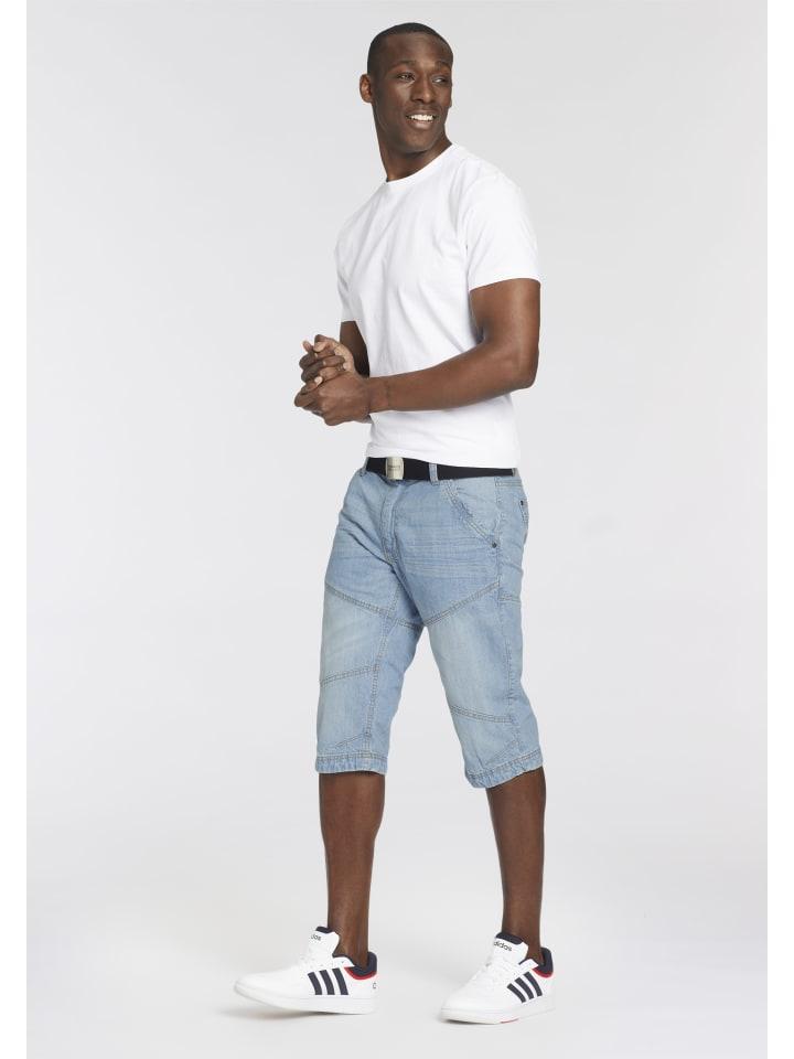 Классический крой с пятью карманами и длиной 3/4. Внешний вид с эффектом потертости. Оригинальный дизайн швов. Комфортное качество денима.