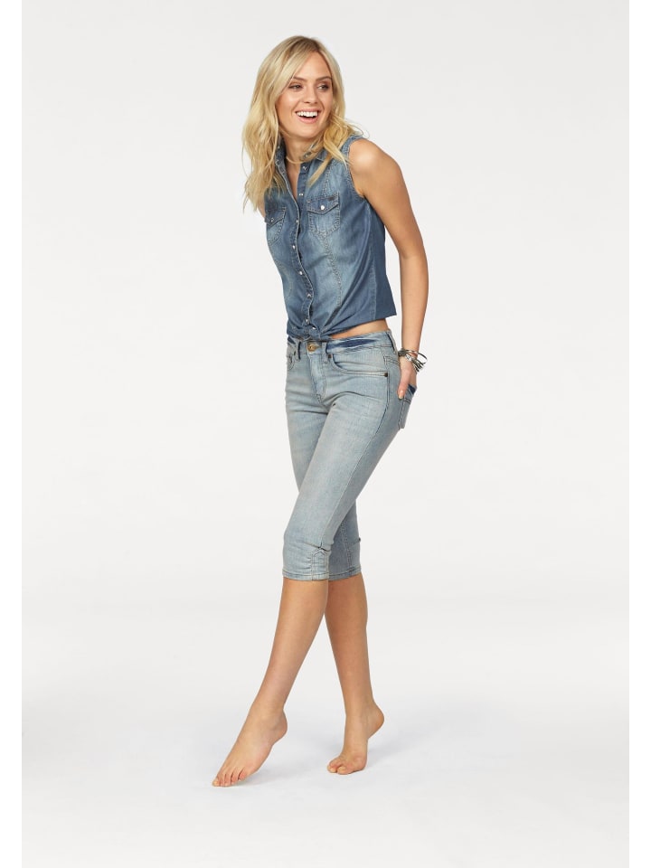 - Джинсы-капри облегающего кроя, идеально подходят для летних дней.