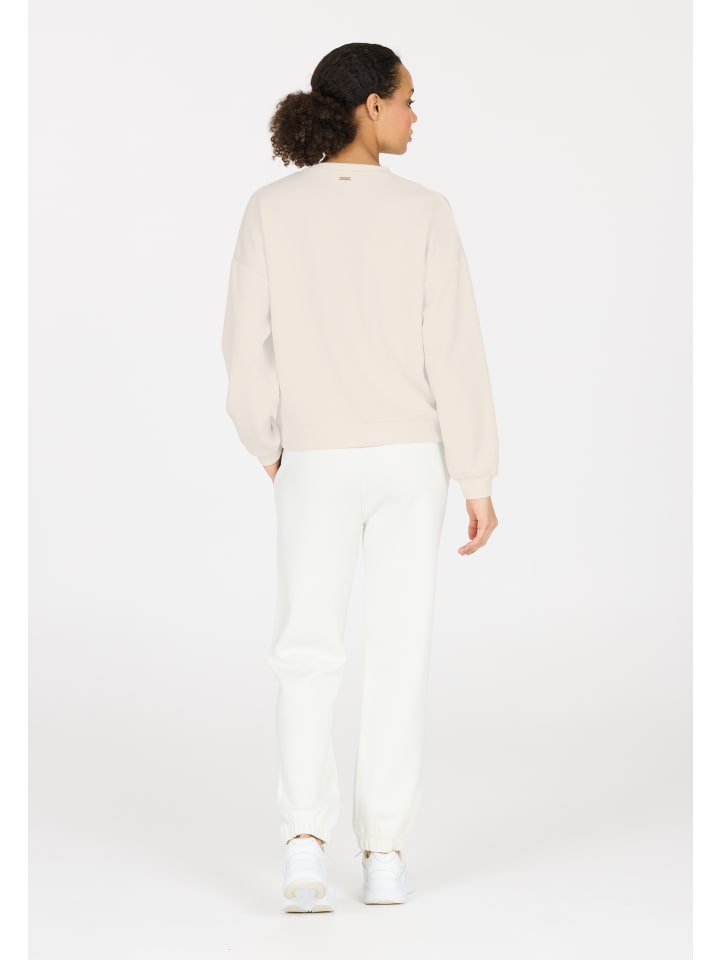 - Женская толстовка с круглым вырезом и простым дизайном.