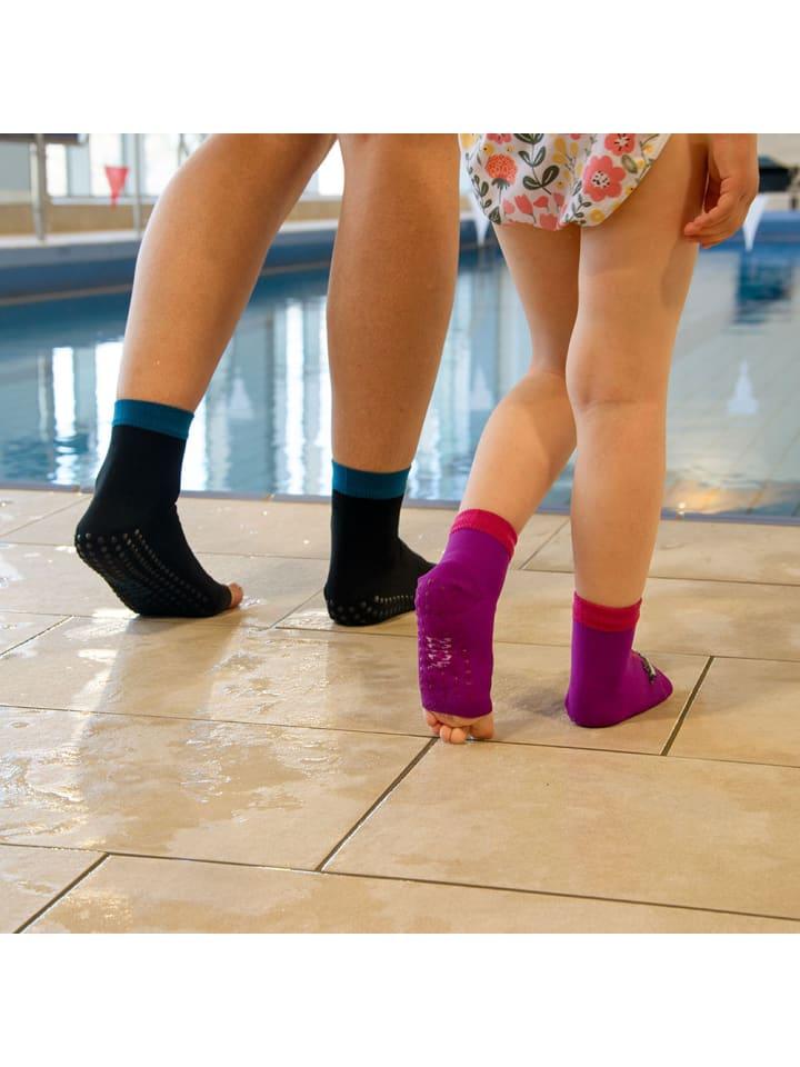 BEACHIES swim Uni - Носки для плавания для всей семьи. Носки для плавания BEACHIES swim Uni серо-зеленого цвета обеспечивают надежную защиту и надежное сцепление для детей и взрослых на мокрой поверхности. Будь то уроки плавания, крытый бассейн или спа-салон - эластичные и легкие материалы обеспечивают удобную посадку в воде и около нее. Открытый носок в сочетании с подошвой ABS с силиконовым покрытием обеспечивает хороший баланс и уменьшает скольжение, что повышает безопасность во время плавания. Идеально подходят для бассейна, душа и аквааэробики. Эти нескользящие носки для бассейна универсальны - идеально подходят для аквааэробики, для купания с детьми или для отдыха в велнес-зоне. Благодаря эргономичной посадке носки для плавания надежно держатся на ногах даже при движении. Высокотехнологичная ткань быстросохнущая, гигиеничная и устойчивая к хлору и морской воде. BEACHIES swim идеально подходят для ежедневного использования в бассейне - от принятия душа до переодевания у бассейна. Функциональные, гигиеничные и долговечные. Эти нескользящие носки для плавания изготовлены из 75% полиэстера, 15% эластана и 10% полиамида и произведены в Германии. Ткань почти не впитывает воду, дышащая и стирается при температуре 60 °C. Это гарантирует гигиеническую чистоту носков для бассейна и сохранение их формы даже после многократного использования. Эти носки для плавания особенно подходят для семей с детьми или людей, регулярно занимающихся водными видами спорта. Краткая информация об областях применения: - Уроки плавания и детское плавание - Крытые бассейны, термальные ванны и сауны - Аквааэробика и водная гимнастика - Скользкие поверхности Зоны в душевых и раздевалках. Примечание: носки для плавания BEACHIES предназначены для гладких, влажных поверхностей, таких как плитка в бассейнах. Существуют ограничения на остатки чистящих средств или, в частности, на глазурованных поверхностях. Всегда ходите осторожно, особенно с детьми.
