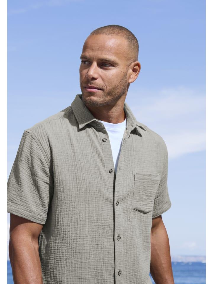 Воздушная повседневная рубашка с короткими рукавами из муслина от Beachtime. Классический воротник и классический нагрудный карман. Застежка на пуговицы. С кокеткой сзади и прямым нижним краем. Идеально подходит для летнего отдыха. Дышащий хлопок.