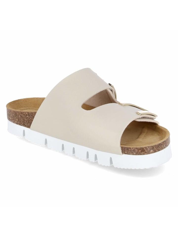 Женские мюли Beliana бежевого цвета изготовлены из прочной искусственной кожи и отличаются легкостью, что делает их идеальными для повседневной носки. Они застегиваются на две липучки, которые не только обеспечивают индивидуальную посадку, но и дополнены современными декоративными элементами с золотистым эффектом. Мягкая формованная кожаная стелька обеспечивает превосходный комфорт и поддержку, а плоская платформа высотой около 3 см добавляет комфортную высоту, не жертвуя комфортом.