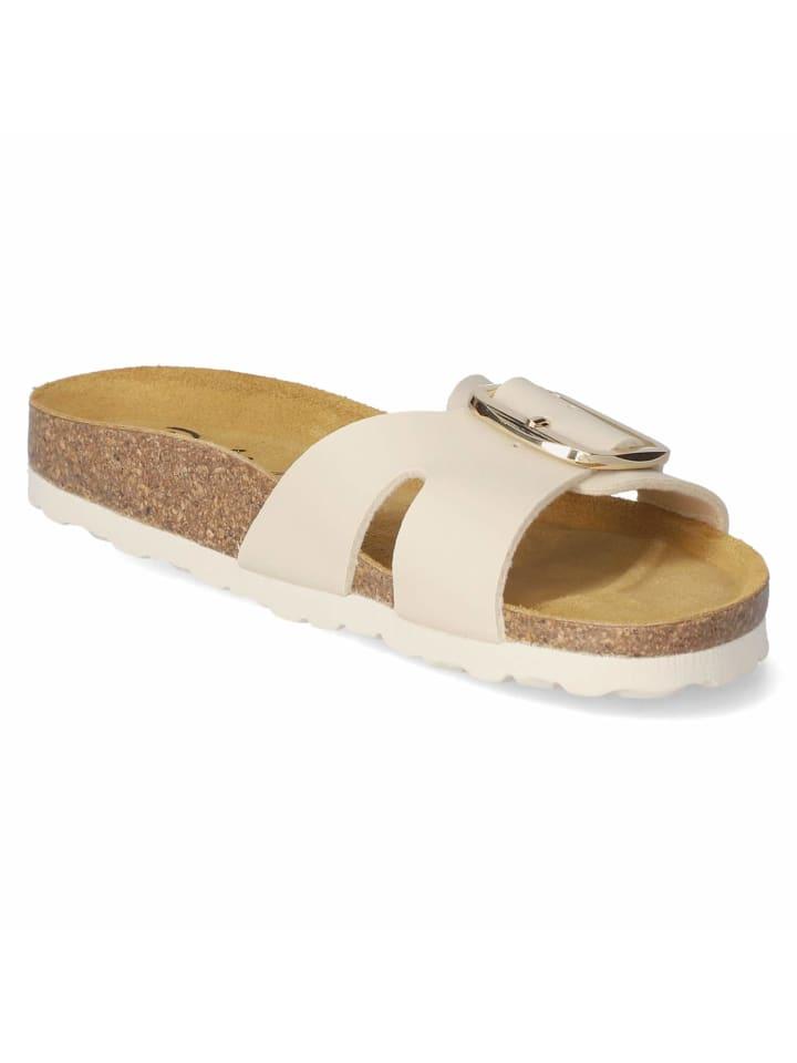 Женские мюли Beliana элегантного бежевого цвета сочетают в себе модный дизайн и функциональный комфорт. Высококачественная искусственная кожа придает обуви стильный вид, а крупная золотистая пряжка привлекает внимание и позволяет регулировать ширину. Перекрещивающийся декоративный ремешок легко регулируется и обеспечивает оптимальную поддержку. Формованная кожаная стелька удобно адаптируется к форме стопы и благодаря легкой подкладке обеспечивает комфортную посадку - идеально для теплых дней и длительных прогулок. Гибкая подошва обеспечивает естественное перекатывание стопы, гарантируя устойчивость на различных поверхностях. Эти мюли универсальны и дополняют как повседневные образы, так и летние наряды с ноткой элегантности.