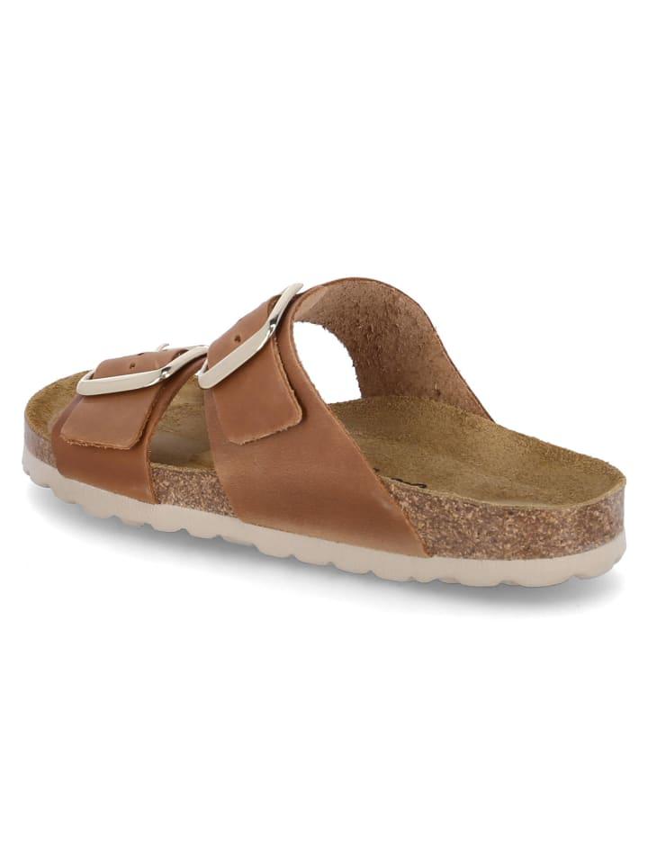 Женские мюли Beliana из коричневой замши - это удачное сочетание комфорта и стиля. Два широких ремешка с пряжками с золотистым эффектом добавляют элегантности и позволяют подобрать идеальную посадку. Мягкая, предварительно сформированная пробковая стелька с кожаным покрытием обеспечивает оптимальную поддержку стопы и максимальный комфорт. Дизайн дополняет прочная подошва из ЭВА с противоскользящим профилем, которая обеспечивает устойчивость и гибкость. Эти универсальные мюли идеально подходят для летних нарядов и сочетаются как с повседневными шортами, так и с струящимися платьями.
