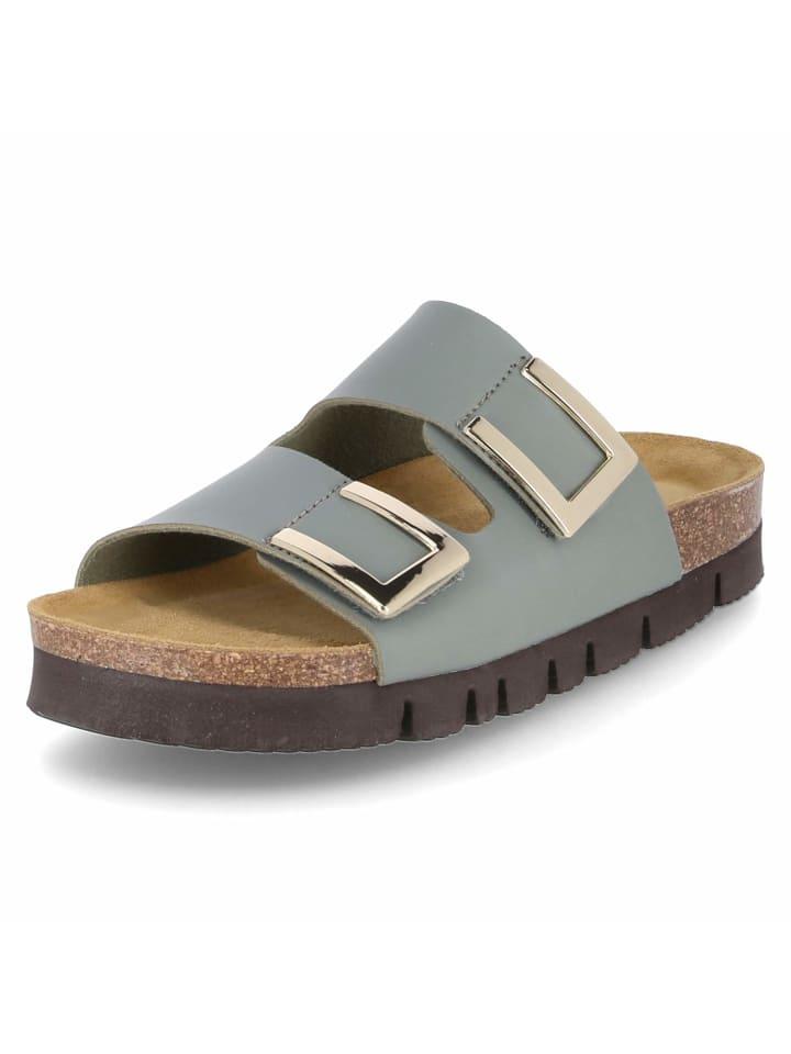 Женские мюли Beliana приглушенно-зеленого цвета изготовлены из высококачественной искусственной кожи и отличаются легкостью, что делает их особенно удобными для повседневной носки. Две застежки-липучки, украшенные современными декоративными элементами с золотым эффектом, не только обеспечивают практичную регулировку, но и добавляют элегантности. Мягкая формованная кожаная стелька обеспечивает оптимальный комфорт и поддержку, а плоская платформа высотой около 3 см добавляет высоты, не жертвуя комфортом.