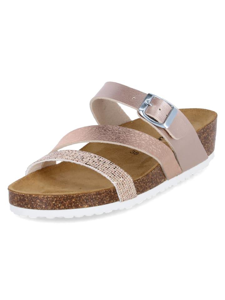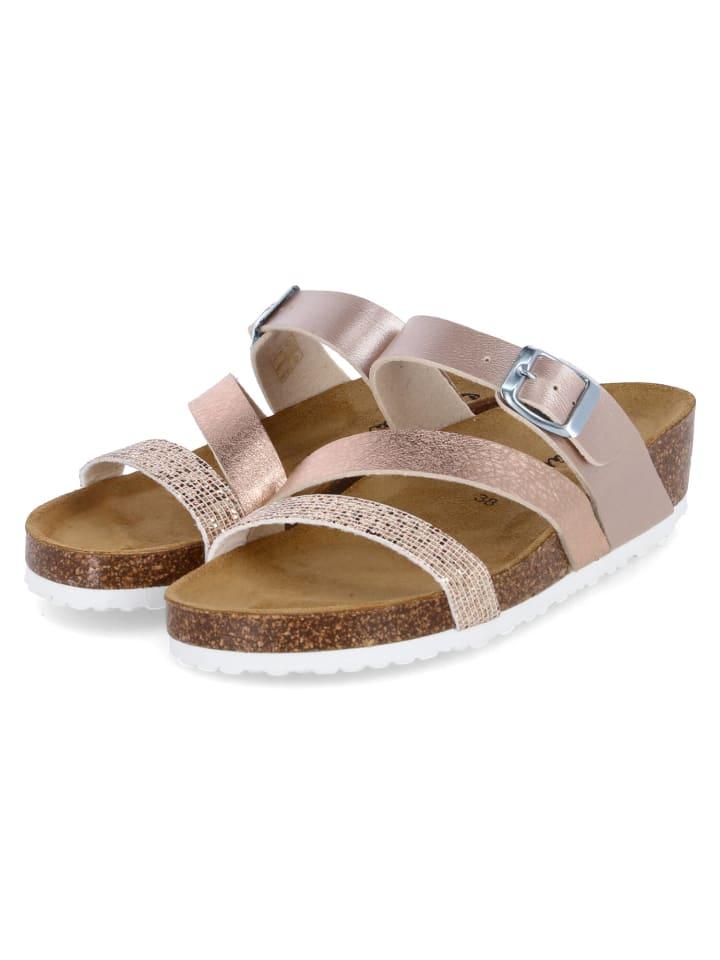 Женские мюли BELIANA из элегантной искусственной кожи бронзово-золотистого цвета сочетают в себе стиль и комфорт. Регулируемый ремешок с пряжкой позволяет подогнать обувь по размеру, а мягкая пробковая стелька с кожаным покрытием обеспечивает оптимальную поддержку стопы и комфортную посадку. Подошва из ЭВА с профилированным протектором обеспечивает гибкость и надежное сцепление. Эти элегантные мюли идеально подойдут для летних нарядов и добавят гламурных акцентов в любую комбинацию.