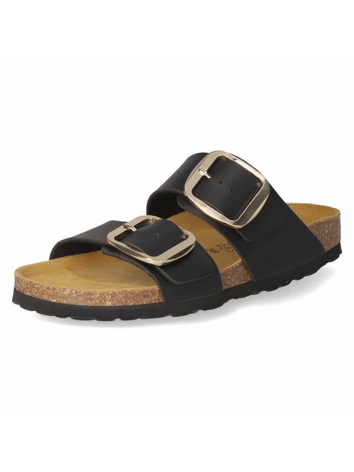 Женские мюли Beliana классического черного цвета впечатляют стильным сочетанием комфорта и элегантности. Изготовленные из легкого в уходе синтетического материала, они дополнены двумя широкими регулируемыми декоративными ремешками с золотистыми пряжками, которые не только добавляют привлекательности внешнему виду, но и позволяют регулировать посадку. Формованная мягкая кожаная стелька обеспечивает комфортную посадку и естественную поддержку стопы, идеально подходящую для длительной ходьбы или стояния. Гибкая подошва дополняет комфорт и обеспечивает надежное сцепление с различными поверхностями. Будь то с летними платьями, шортами или повседневными брюками - эти мюли можно комбинировать по-разному, и они станут стильным спутником на каждый день, в отпуске или на отдыхе.
