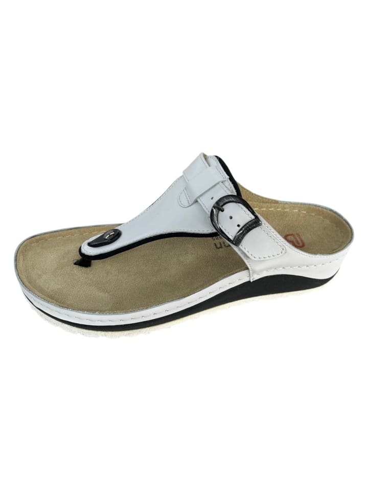 Удобные и стильные мюли с разделителем для пальцев ног от BERKEMANN. Качество и комфорт здесь превыше всего. Двухцветная подошва из гладкой кожи, не требующей особого ухода, добавляет изюминку. Регулируемая пряжка обеспечивает идеальную посадку и поддержку. Мягкая кожаная подкладка обеспечивает комфорт вашим ногам. Мягкая стелька, также изготовленная из кожи, обеспечивает беззаботную ходьбу. Нескользящая резиновая подошва с белым рантом и танкетка высотой около 3,5 см идеально дополняют эту женскую обувь. Шикарные и удобные все лето с новыми мюлями с разделителем для пальцев ног от BERKEMANN.
