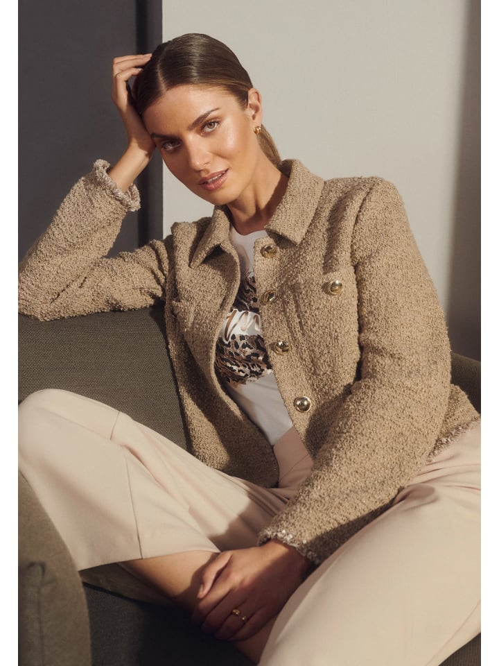 Настоящее чудо комбинирования, которое подходит к любому наряду! Этот пиджак из мягкого разноцветного материала впечатляет классическим рубашечным воротником и классическим кроем. Застежка на пуговицы и накладные карманы придают ему практичность и элегантность - идеально для универсальных и стильных образов.