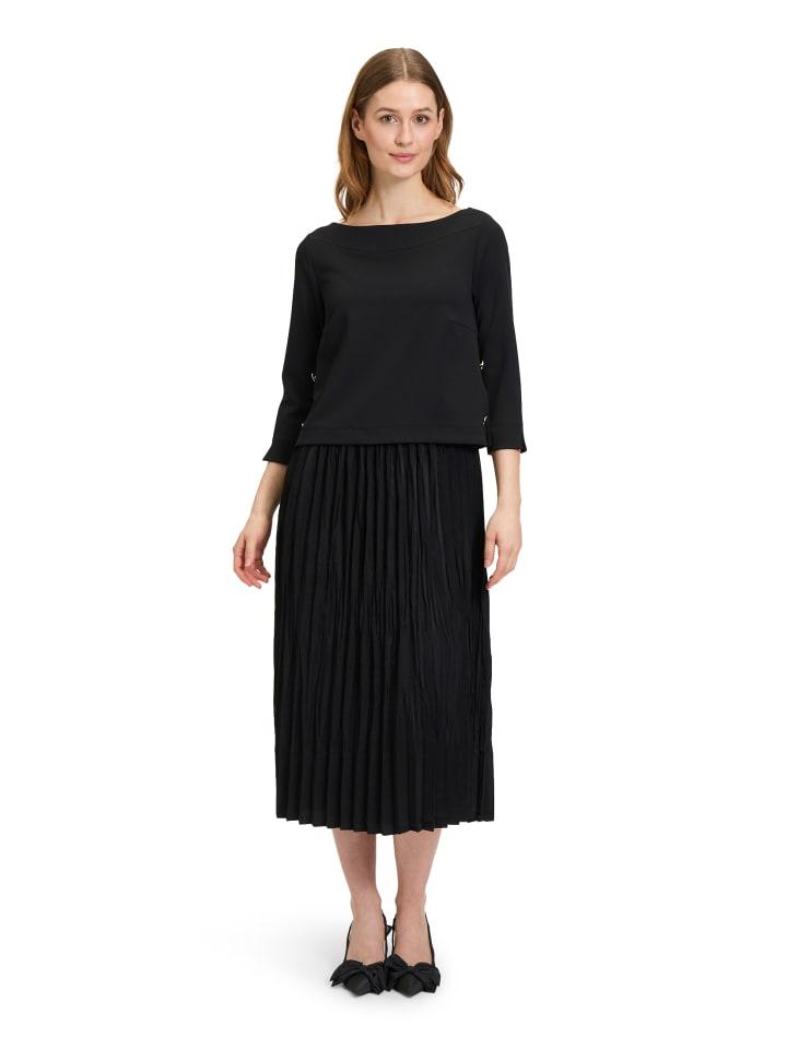 Это облегающее трикотажное платье сочетает в себе строгую элегантность и исключительный комфорт. Плиссированная юбка и свободный крой верха придают платью неповторимый вид. Отсутствие застежки и однотонный дизайн делают его идеальным для особых случаев. Платье вне времени для стильных образов!