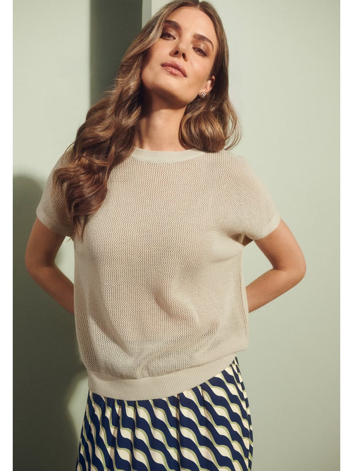 Этот ажурный вязаный свитер впечатляет своим непринужденным кроем и вневременным лаконичным внешним видом. Воздушный узор обеспечивает приятную воздухопроницаемость и придает легкость и непринужденность повседневному стилю. Универсальный предмет одежды, идеально подходящий для уютных дней или перехода к холодному времени года.