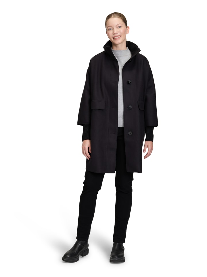 Ищете что-то особенное? Это шерстяное пальто с вязаными деталями на воротнике и манжетах впечатляет высококачественным материалом, сочетающим тепло и современный вид. Свободный крой обеспечивает непринужденный комфорт, а пуговицы и прорезные карманы сочетают функциональность и элегантность. Благодаря простому, лаконичному крою, пальто универсально и добавит стильный штрих любому образу - элегантный must-have для повседневной носки и особых случаев.