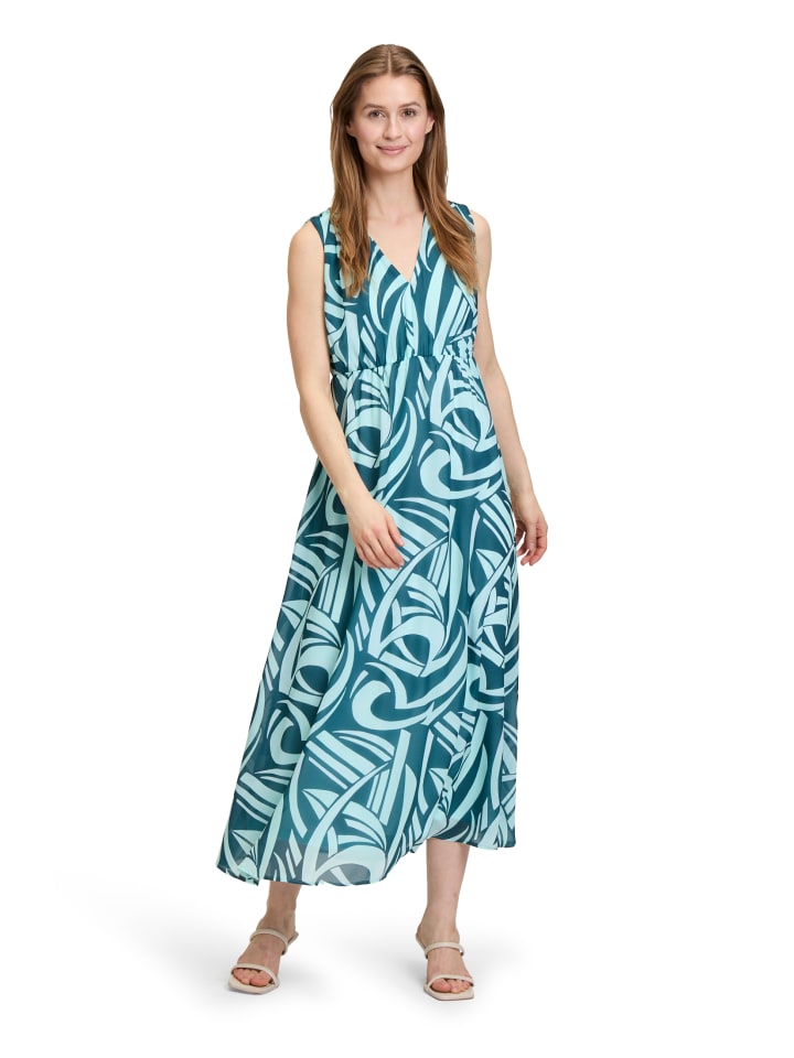 Это шифоновое платье отличается простым, но элегантным кроем. Облегающий крой подчеркивается завязкой на талии, что обеспечивает индивидуальную посадку. Изящные оборки на лифе придают платью изящный силуэт, а неброский принт добавляет утонченную женственность. Безрукавка идеально подходит для теплых дней и обеспечивает высокий уровень комфорта. Молния сзади позволяет легко надевать и снимать платье.
