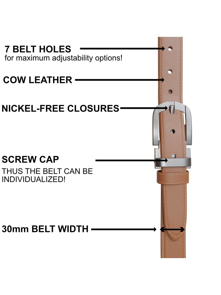 Благодаря завинчивающейся пряжке ремень можно легко укоротить до нужного размера талии - без специальных инструментов. Поэтому он всегда идеально сидит и обеспечивает комфорт.