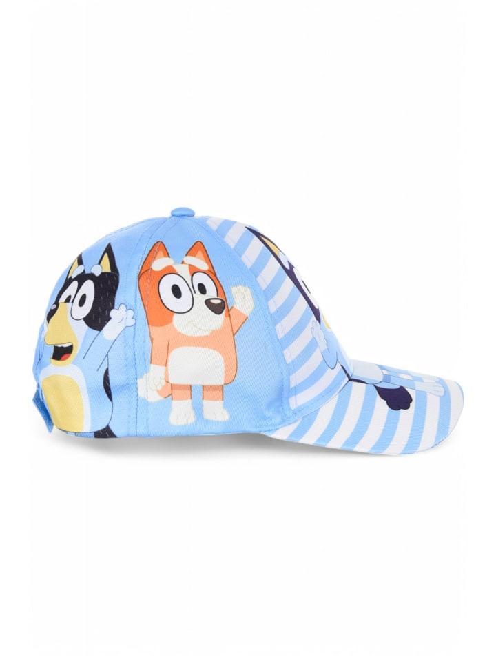 Сине-белый полосатый дизайн создает свежий образ, а Bluey радостно машет рукой спереди.