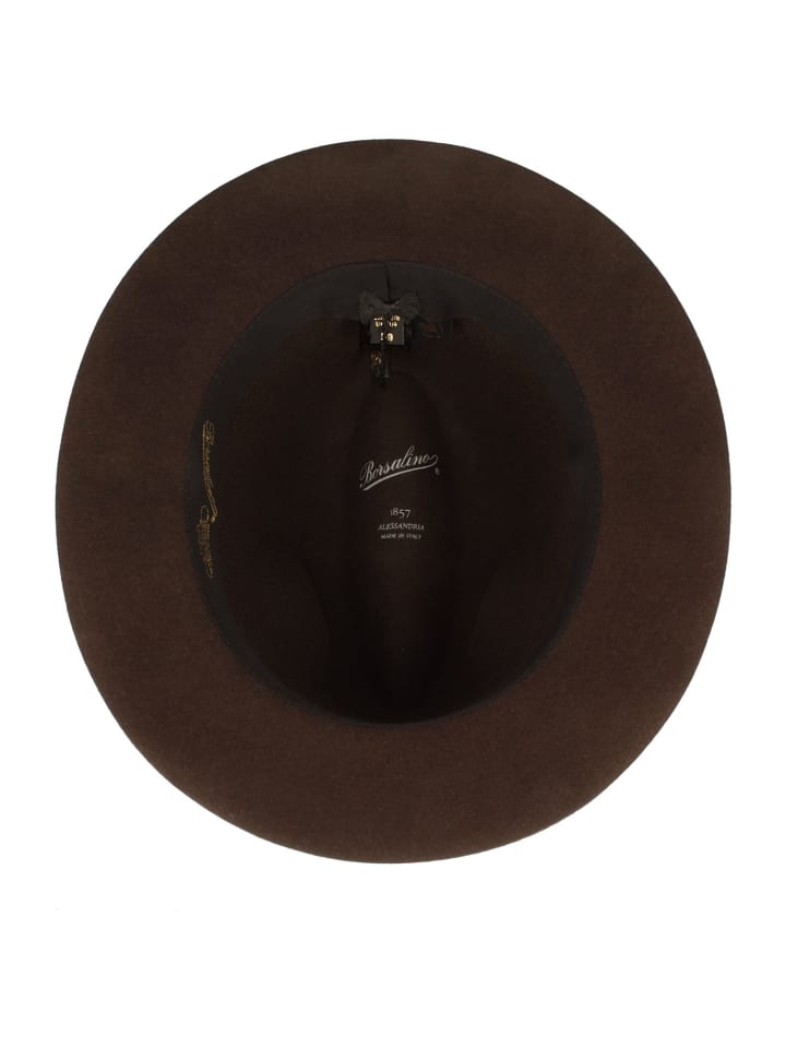 - Отделка из репсовой ленты с застежкой с левой стороны; золотая надпись Borsalino на манжете.