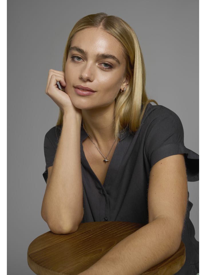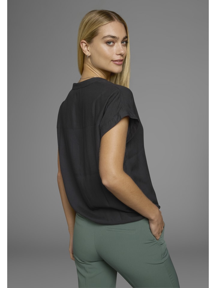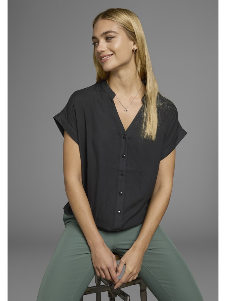 Женская блузка-рубашка Boysen's, легко комбинируемая, свободного кроя, с кокеткой сзади. Короткие рукава. Мягкая и легкая ткань делает верх особенно комфортным.