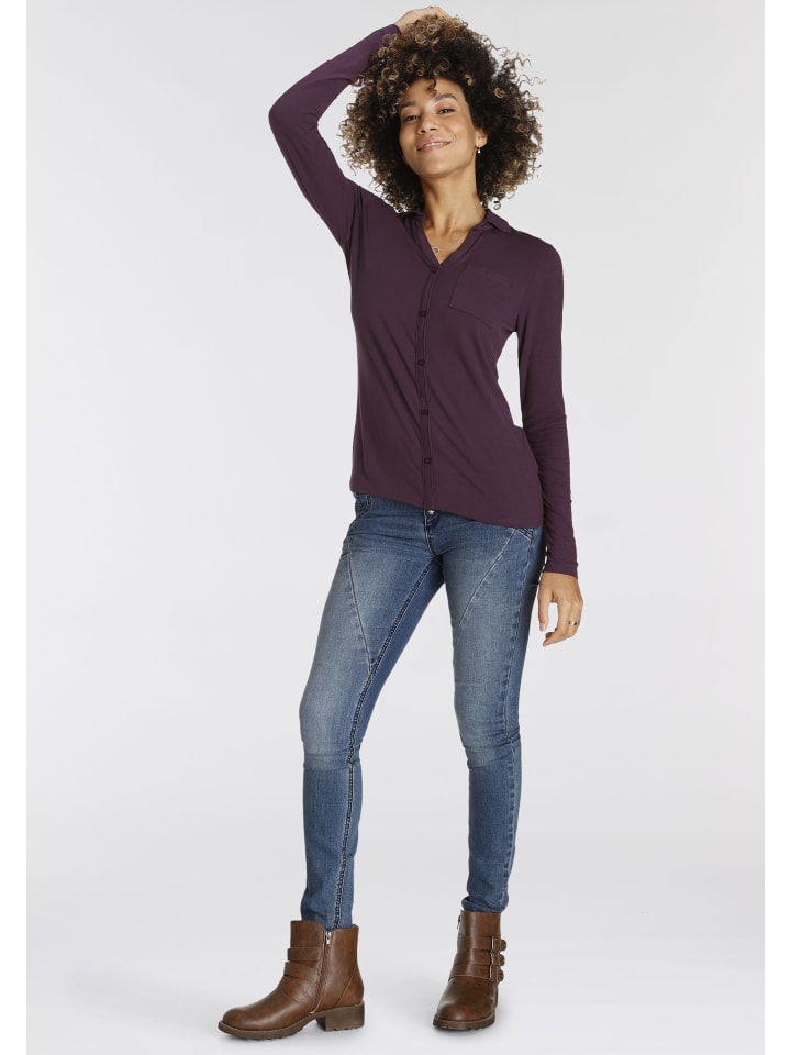 Женская рубашка с длинным рукавом от Boysen's, которую легко комбинировать. Облегающая посадка и прикрытие бедер. Застежка на пуговицы. Украшена модными и стильными декоративными пуговицами. Верх выполнен из эластичного и мягкого трикотажа для максимального комфорта.