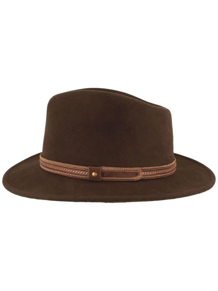Сворачиваемая и классическая шляпа из шерстяного фетра с декоративным покрытием из искусственной кожи.
