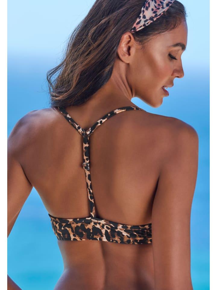 Бикини пуш-ап с леопардовым принтом по всей поверхности от Bruno Banani. Регулируемые Y-образные бретельки. Застежка спереди между чашечками с уплотнителем и встроенным усилением. Плавки классического кроя. Эластичная ткань с добавлением переработанного полиамида.