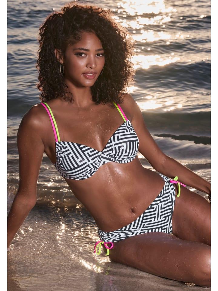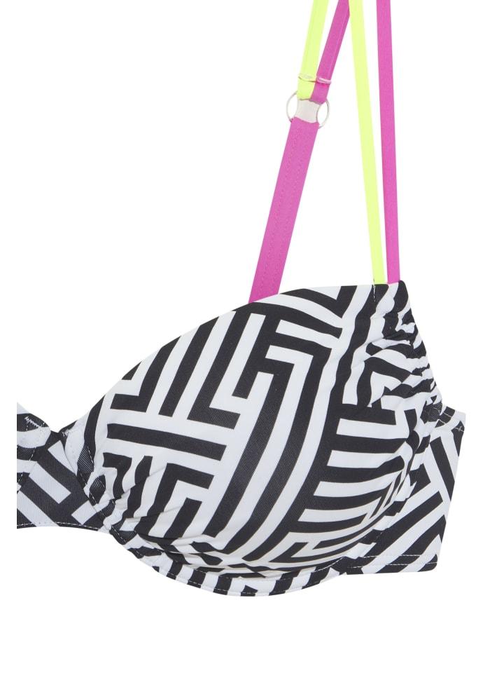 Бюстгальтер на косточках с графическим рисунком от Buffalo. Двойные регулируемые бретели неоновых цветов. Мягкие съемные чашечки. Модель Mix-kini. Эластичная ткань с добавлением переработанного полиамида.