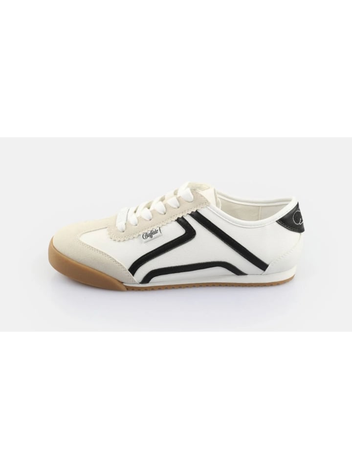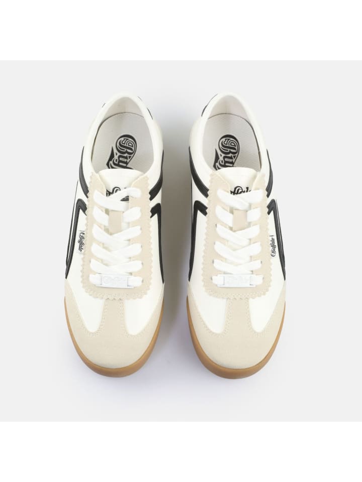 Чистый дизайн в кремовом цвете идеально дополняется яркими черными контрастными элементами и коричневой резиновой подошвой
