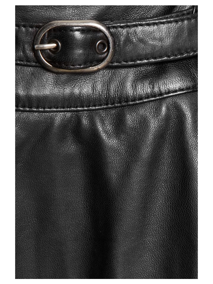 Практичная молния на спине позволяет легко надевать юбку и завершает образ. Будь то в офисе, на ужине или в качестве яркого образа для особого случая, эта кожаная юбка станет универсальным спутником для уверенных в себе стильных женщин.