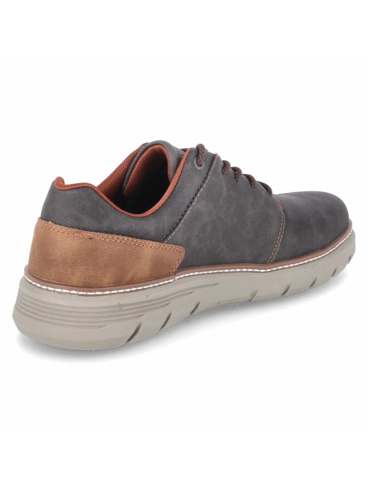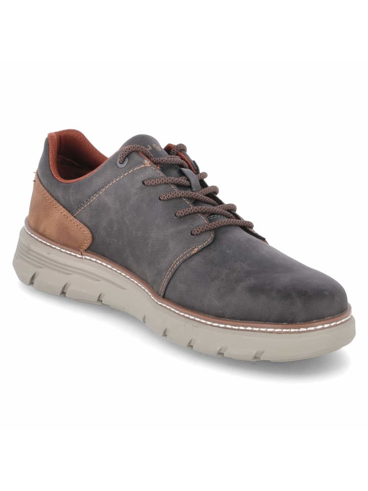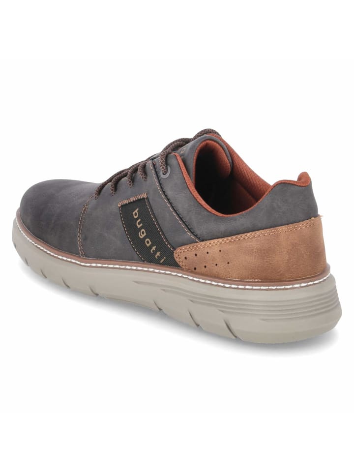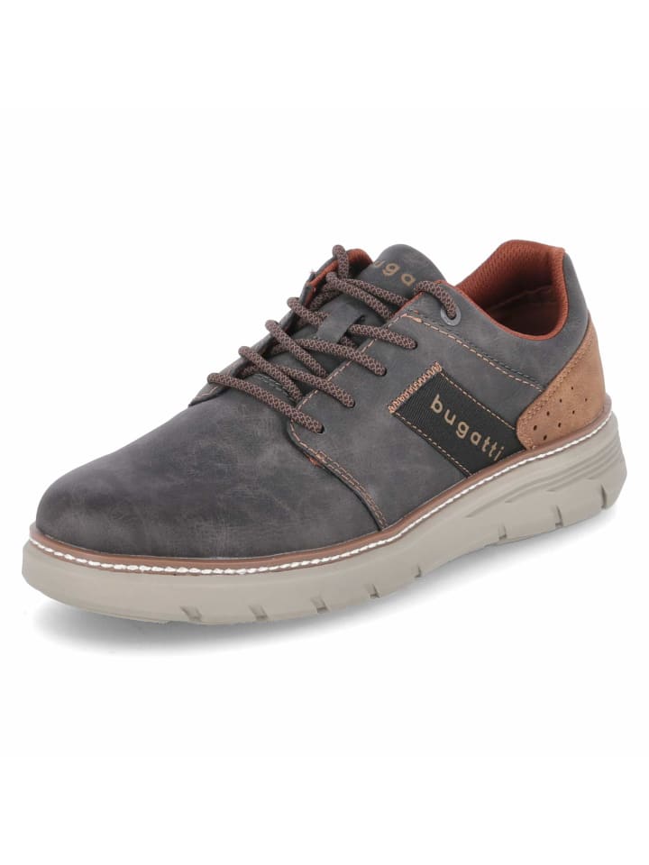 Современные и спортивные, удобные для повседневной носки: полуботинки Bugatti темно-серого цвета стильно смотрятся благодаря коричневому пяточному элементу. Прочный синтетический верх, не требующий особого ухода, а фирменные детали подчеркивают высокое качество. Эластичные шнурки, мягкий бортик и круглый носок повышают комфорт, а усиленные носок и пятка обеспечивают устойчивость. Мягкая съемная стелька с текстильной вставкой и небольшой вес делают эти туфли удобными для самых разных случаев. Посадка удобная и легко регулируется. Модный совет: наденьте оливковые брюки-карго или серые джоггеры, легкую толстовку с капюшоном и коричневый ремень для повседневного образа на выходные с гармоничной цветовой гаммой.