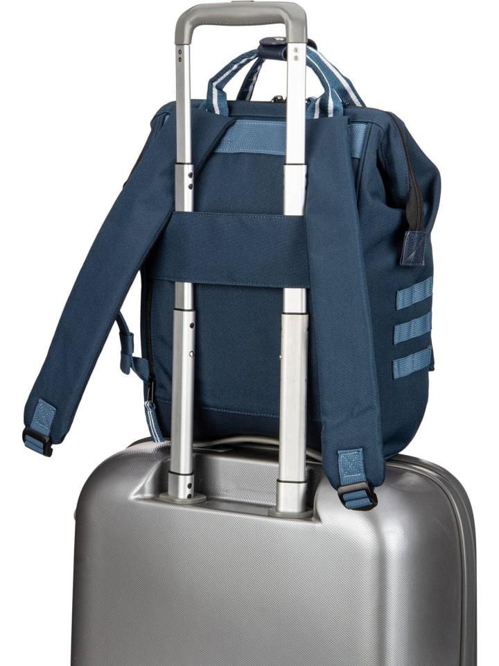 - изготовлен из переработанного полиэстера и искусственной кожи
