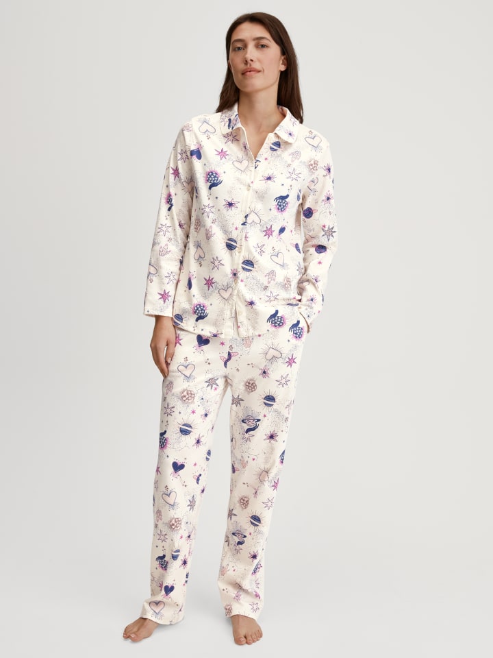 Линия ночного белья FAVOURITES UNIVERSE, сочетающая в себе все галактические просторы и привычный комфорт, приглашает вас в путешествие по миру безмятежности. Космические мотивы - от стилизованных солнц до мечтательных звездных пейзажей и классической клетки - придают каждому образу индивидуальность. Высококачественные материалы, такие как мягкая хлопковая фланель, мягкий трикотаж из хлопка и согревающий органический хлопковый интерлок, обеспечивают естественный комфорт, идеально подходящий как для теплых летних ночей, так и для прохладных вечеров. В сочетании с гармоничными цветами, креативными принтами и гармоничными однотонными цветами получается стильная и удобная одежда для сна.