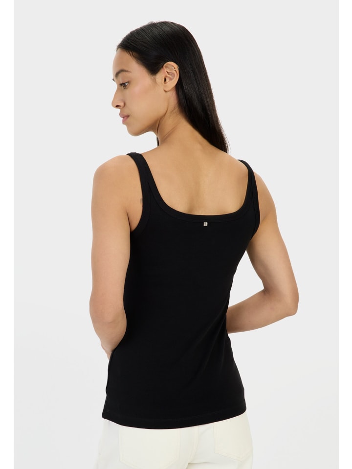 Этот топ из чистого хлопка впечатляет своим комфортом и универсальностью. Благодаря узким бретелям и прямому подолу он выглядит минималистично и вне времени. Приталенный крой подчеркивает фигуру, не стесняя движений, - идеально подходит для непринужденных образов или в качестве основы для многослойных образов.