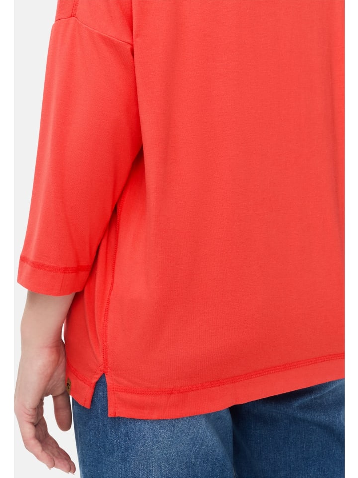 Эта футболка с рукавами 3/4 привнесет приятную свежесть в повседневную жизнь благодаря мягкой вискозе и свободному крою. Круглый вырез, тонкие декоративные швы и боковые разрезы сделают ее идеальным спутником для отдыха.