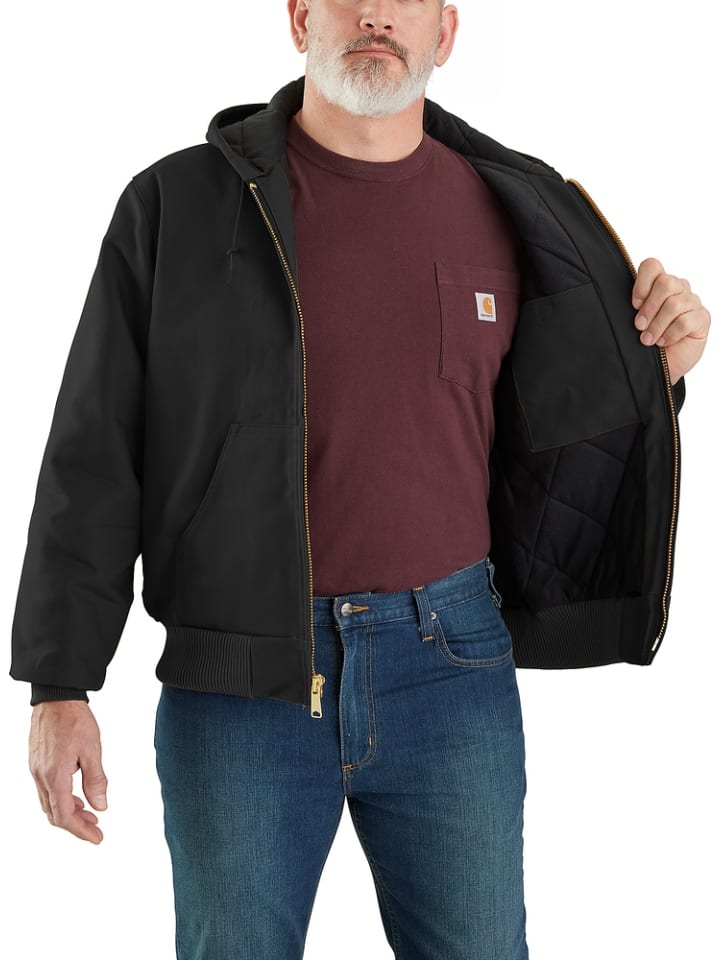 Свободный крой 12 унций/ярд - 407 г/м² 100% Хлопок Плотная подкладка: фланель с ромбовидной стежкой Wind Fighter - останавливает ветер Пришитый капюшон из трех частей со стеганой подкладкой и регулируемой завязкой на шнурке Два больших глубоких передних кармана Два внутренних кармана, один на молнии, другой на липучке Молния во всю длину спереди Трикотажные манжеты Трикотажный пояс Накладной лейбл Carhartt пришит на карман Материал: 100% Хлопок