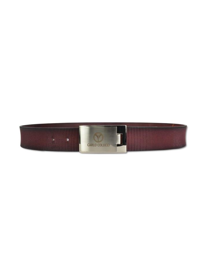 Высококачественный ремень со специальным тиснением в виде канавок обеспечивает гармоничный дизайн. Простой силуэт визуально дополняется сатинированной пряжкой-клипсой и лазерной гравировкой логотипа CARLO COLUCCI. Прекрасное сочетание, которое дополнит любой образ.