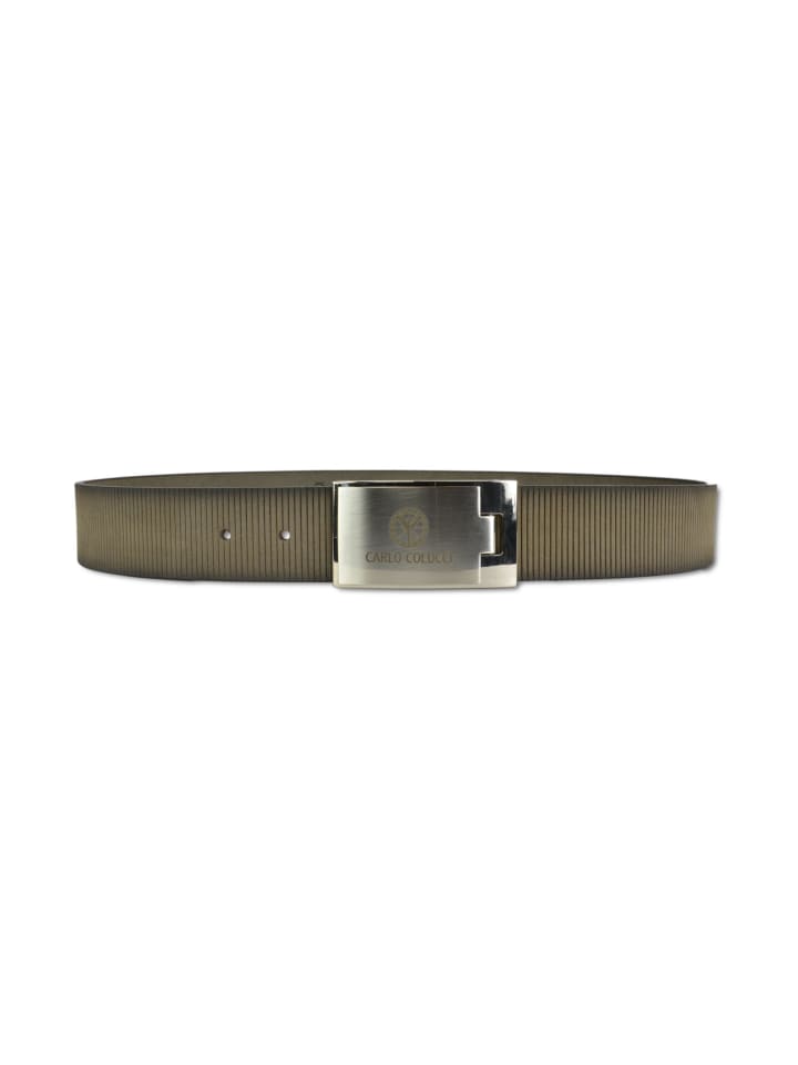 Высококачественный ремень со специальным тиснением в виде канавок обеспечивает гармоничный дизайн. Простой силуэт визуально дополняется сатинированной пряжкой-клипсой и лазерной гравировкой логотипа CARLO COLUCCI. Прекрасное сочетание, которое дополнит любой образ.