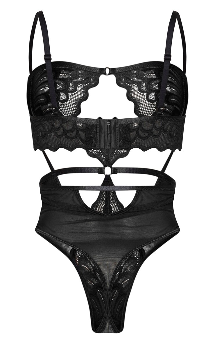 Поднимите свой образ на совершенно новый уровень с этим безумно жестоким телом. Модель из черного кружева с вырезами и регулируемыми бретелями. Придайте этому соло знойный вид, который нам очень нравится.