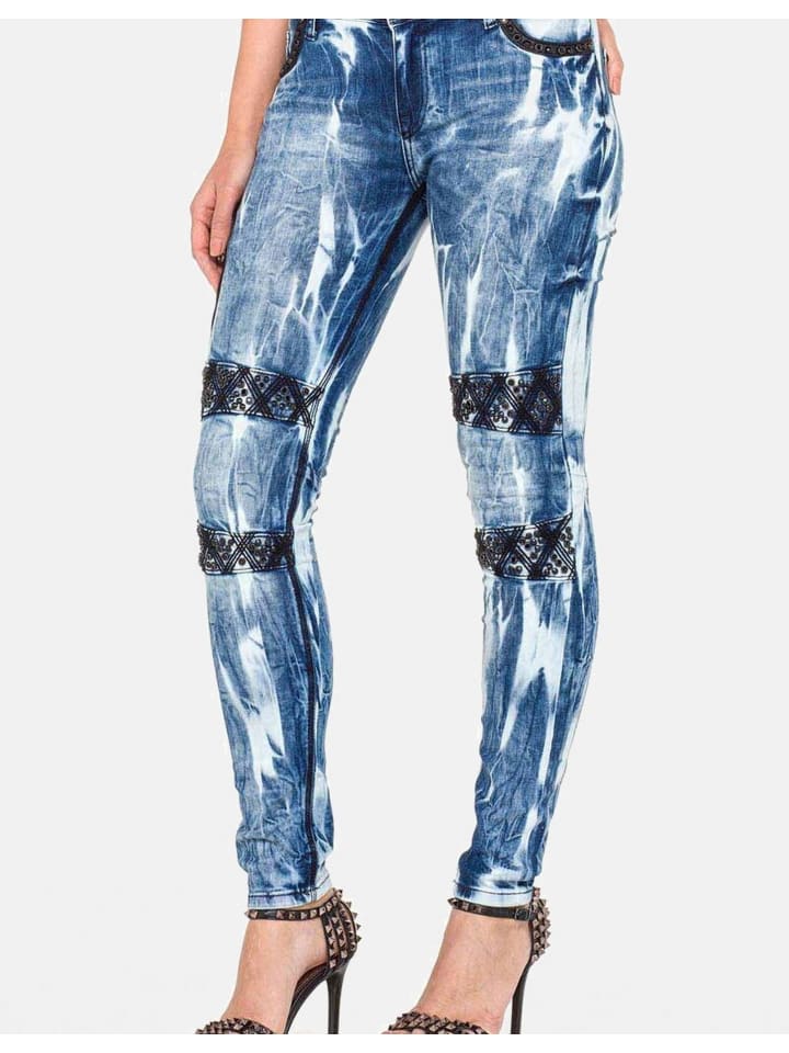 Экстравагантные джинсовые модели - фирменный стиль Cipo & Baxx. Создав эти джинсы, дизайнеры создали модную вещь, которая идеально дополнит ваш образ. Уникальная потертость имеет винтажный вид и украшена декоративной строчкой и мерцающими стразами. Аппликации из искусственной кожи добавляют рок-нотку и украшают передние карманы. Молния сбоку делает джинсы еще более изысканными, гармонично дополняя общий образ. Пять карманов придают джинсам аутентичный вид, который подчеркивают застежка на молнию и пуговицы. Хлопковая ткань эластична и сохраняет форму, делая эти узкие брюки идеальными для носки. Модель: WD-368.