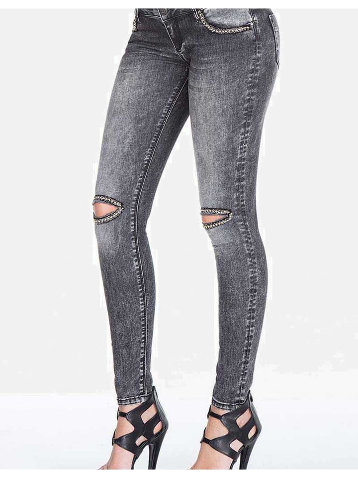 Эти джинсы от Cipo & Baxx сочетают в себе элегантность и стиль. Модель выполнена из смеси хлопка и имеет облегающий крой, идеально подходящий для женственных, подчеркивающих фигуру образов. Изюминкой дизайна являются потертости на коленях, элегантно подчеркнутые сверкающими камнями, которые красиво мерцают на свету. Боковые карманы брюк также украшены камнями, так что вы гарантированно создадите образ, привлекающий внимание.