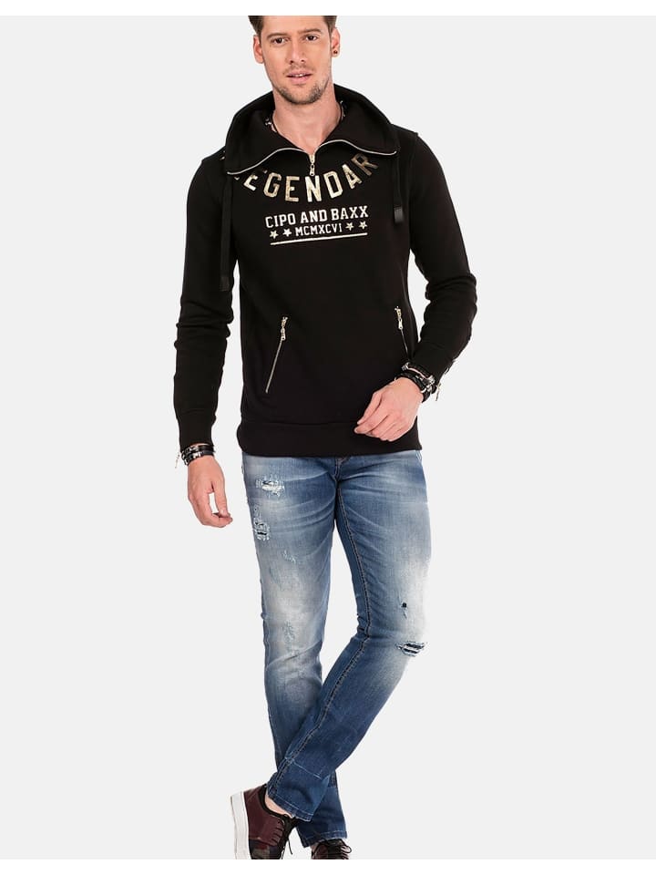 Пришло время для легендарного образа! Эта толстовка от Cipo & Baxx быстро продемонстрирует, как ваш стиль может легко стать крутым. В сочетании с модными рваными джинсами и повседневными кроссовками эта рубашка - идеальное сочетание, чтобы выделиться. Однотонный хлопковый трикотаж сочетается с золотистой 3D-надписью, что полностью соответствует стилю культового бренда. Шалевый воротник на молнии стильно и современно дополняет образ, а кулиска на воротнике добавляет нотку комфорта. Молнии также добавляют элегантные детали карманам и манжетам рукавов в рок-стиле. Ребристые манжеты придают спортивный вид и придают облегающему крою немного контуров. Благодаря тонкому хлопковому миксу вы можете быть уверены, что толстовка очень удобна в носке и приятно прилегает к коже. Модель: CL-324.