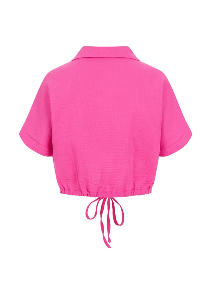 Укороченная блузка на каждый день идеально подходит в качестве легкого слоя одежды. Изготовленная из чистого хлопка, она обеспечивает комфорт и воздухопроницаемость, а классический крой обеспечивает свободу движений. Отложной воротник сочетается с застежкой на пуговицы по всей длине, а короткие втачные рукава с отворотами создают структурированный образ. Кулиска по подолу позволяет регулировать ширину и создавать пропорции, выгодно подчеркивающие фигуру. Сочетание четких линий и практичных застежек делает эту блузку универсальным выбором для создания как непринужденных, так и изысканных образов.