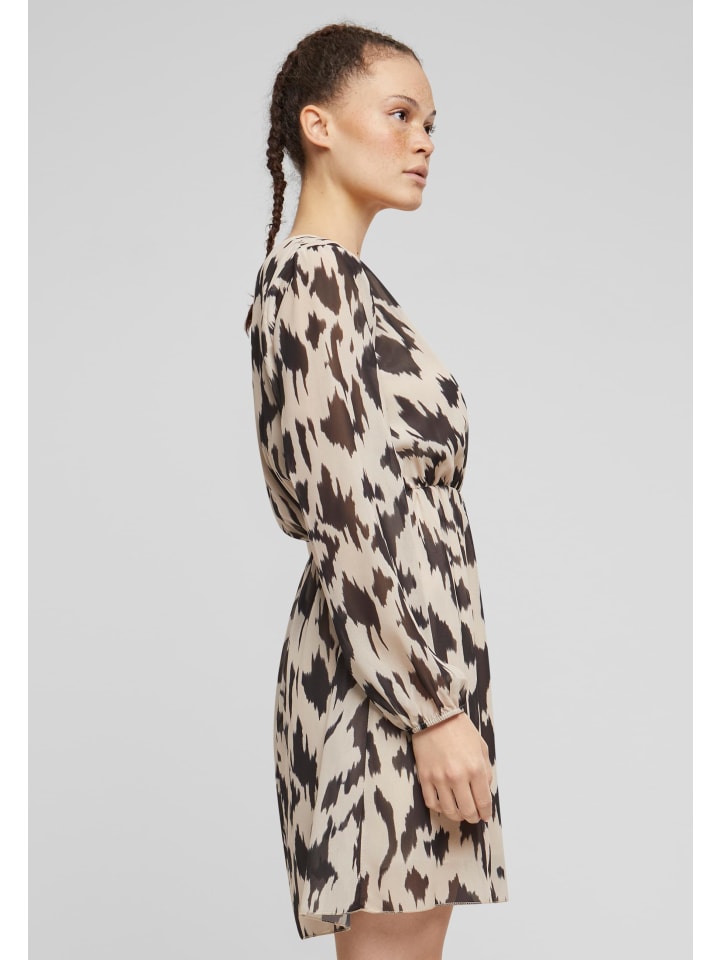 Платье с эффектом запаха, стандартным кроем и завязывающимся поясом, универсально как для повседневной носки, так и для выхода в свет. Мягкая, струящаяся вискозная смесь обеспечивает приятную драпировку и свободу движений, а легкая эластичность обеспечивает удобную посадку. Перекрещивающиеся линии на груди создают V-образный вырез и подчеркивают талию с помощью заметных сборок; завязывающийся пояс позволяет подчеркнуть индивидуальный силуэт. Длинные втачные рукава с узкими манжетами создают гармоничные линии, а подол до колена выглядит свободным и женственным. Простое платье для создания универсальных образов, которое легко адаптируется к разным случаям.