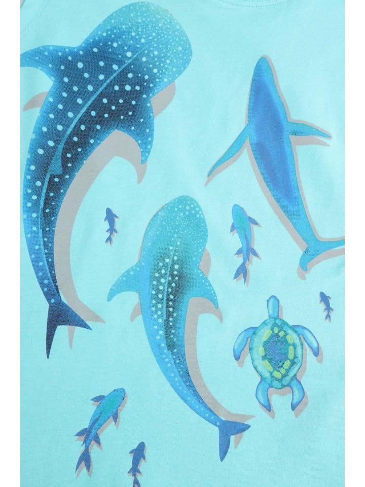 Футболка без рукавов мятно-зеленого цвета с анималистичным принтом. Откройте для себя идеальный выбор для летних дней вашего маленького исследователя! Эта футболка без рукавов мятно-зеленого цвета из тонкого, воздушного хлопка гарантирует комфорт и свободу движений. Округлый вырез горловины обеспечивает комфорт, а отсутствие рукавов делает ее отличным вариантом для теплых дней. Передняя часть футболки украшена анималистичным принтом, который обязательно привлечет внимание любого ребенка. Разноцветные рыбки и черепахи перенесут вашего ребенка в увлекательный мир подводных приключений. Благодаря сертификации ECO 5B вы можете быть уверены, что изделие соответствует самым высоким стандартам безопасности и экологичности. Идеально подходит для пляжа, детской площадки или семейных прогулок. Эта футболка не только стильная, но и, прежде всего, функциональная. Благодаря кнопкам ее легко надевать и снимать (до 98 размера). Выберите качество и комфорт, которые понравятся вашему ребенку!