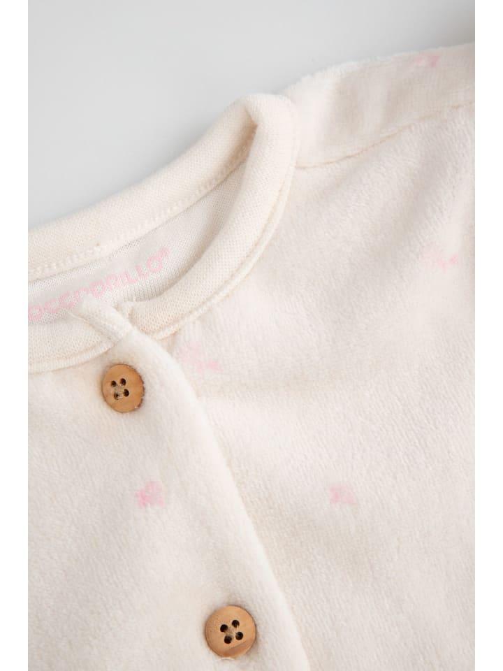 Откройте для себя комфорт и элегантность в нашем бежевом велюровом комплекте для девочек. Изготовленный из мягкого велюра, он мягко и тепло согреет нежную кожу вашего малыша. Изящные оборки на плечах добавляют очарования, а застежка на пуговицы позволяет быстро переодеваться.